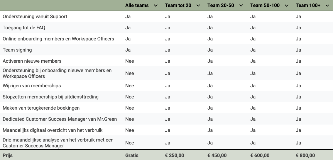 As a Support Plus team, you'll receive extra support from the Mr.Green team. For example, with activating new members, changing memberships, or making recurring bookings. Additionally, you'll gain more insight into your usage, and we'll help you make your monthly invoice clearer.